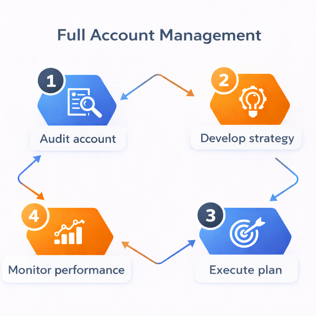 Full Account Management that runs, scales, and safeguards your marketplace presence from end to end.