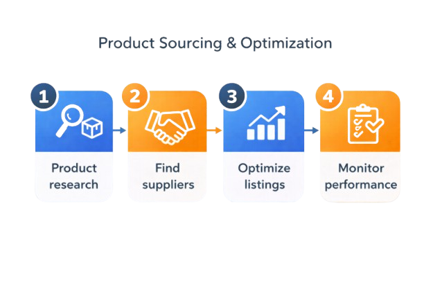 Product Sourcing & Optimization that identifies winning products, streamlines supply chains, and maximizes profitability.